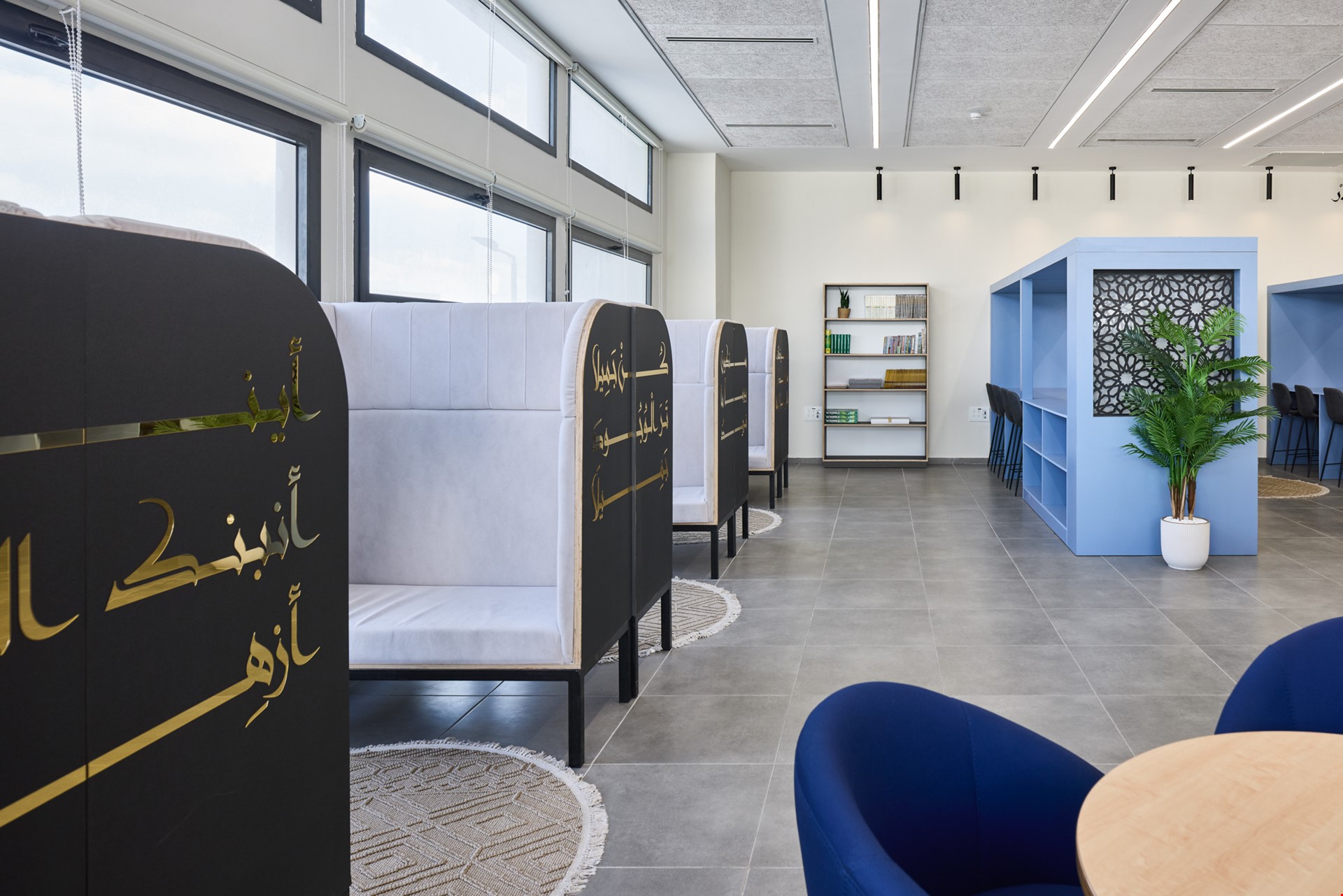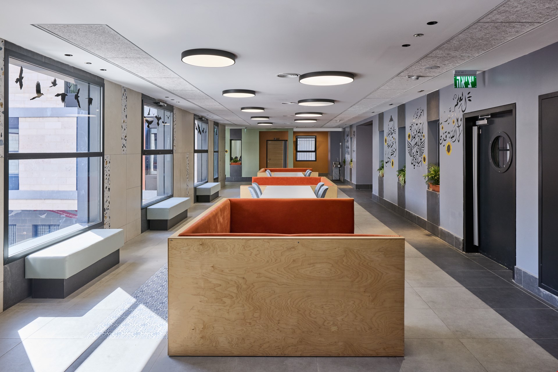 There are 4 classes in each year. The building was defined as an "innovative school" according to the criteria of the Ministry of Education. The floor area of the project is approximately 6,500 square meters on a stand of only 7.5 dunam.