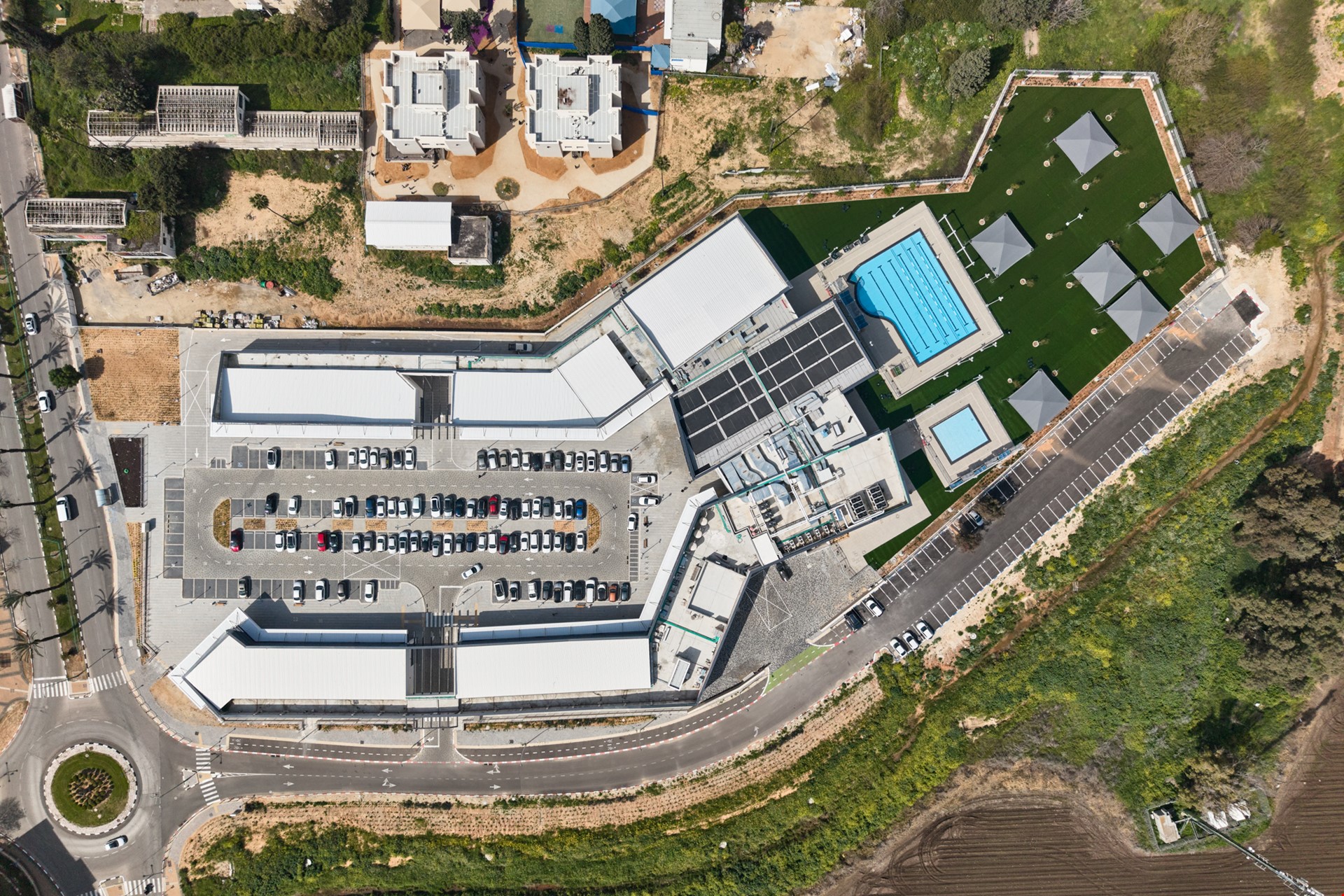 "Sports Club - Family Club - of a total area of 10 dunams that includes an outdoor swimming pool and toddlers wading tool, lawns and a building of a total floor area of approximately 6,400 square meters.