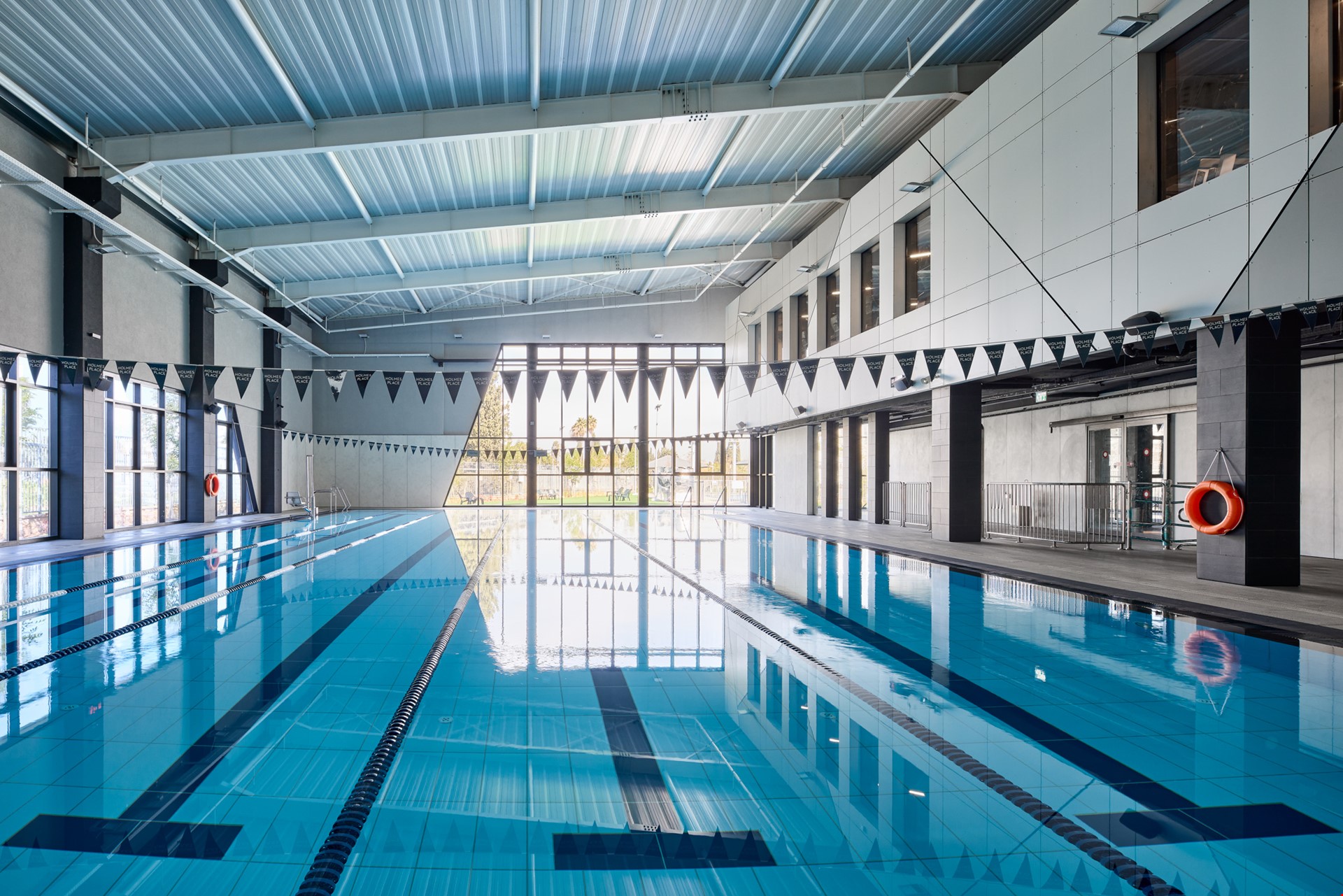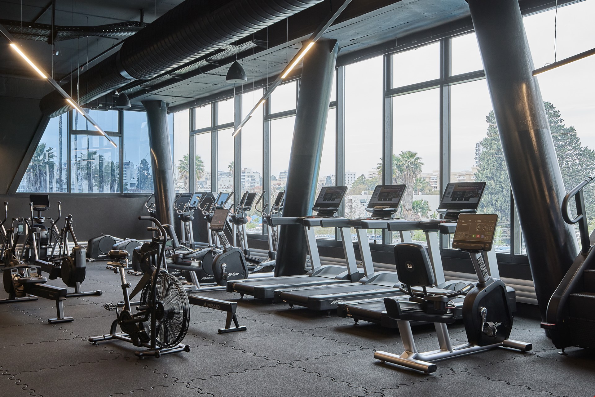 The building includes a two story sports center of a floor area of 3,600 square meters that contains a gym of a floor area of 950 square meters, an indoor swimming pool, studio and activity rooms, a children's activity room, locker rooms, a cafeteria, a shop and administration rooms and a one story commercial center of a floor area of approximately 2,800 square meters.