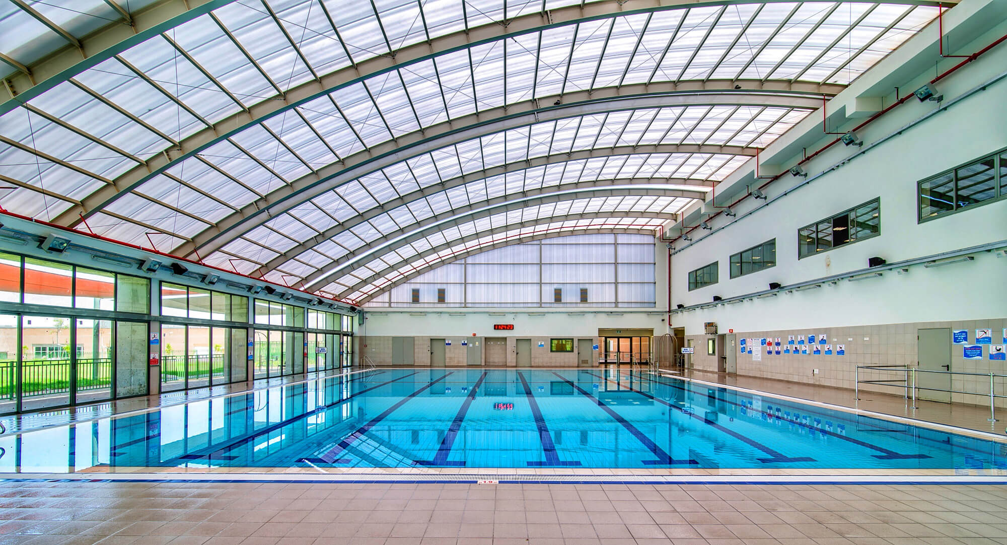 Among the basic facilities is a significant sports complex which contains: A large and multi-purpose sports hall for 1,000 spectators of a floor area of approximately 2,350 square meters, gyms and activities of a total floor area of approximately 1,900 square meters, an indoor and heated half sized Olympic swimming pool, a set of locker rooms, training rooms and auxiliary rooms.